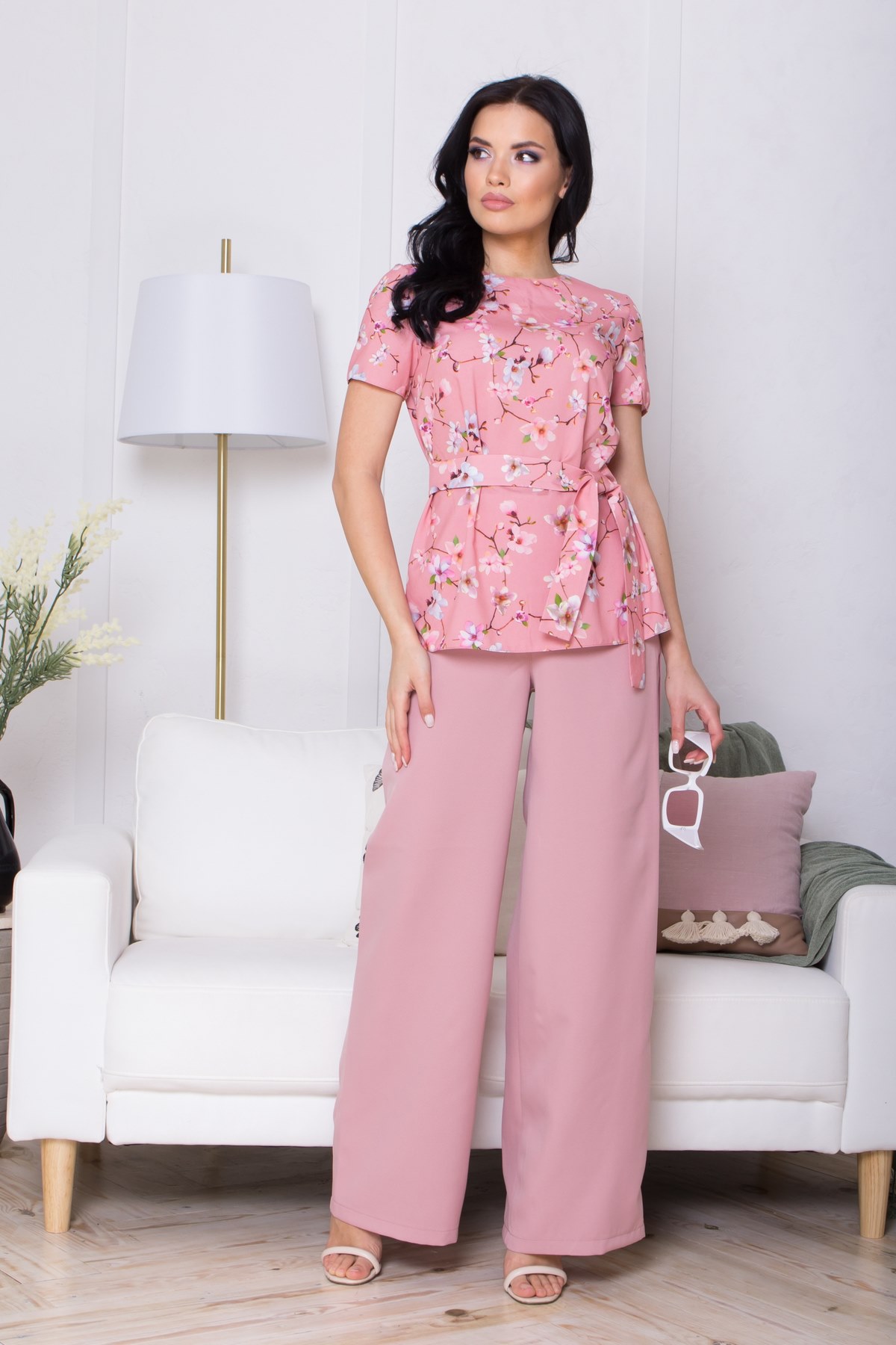 Комплект блуза и брюки "DC-450" (пудровый)