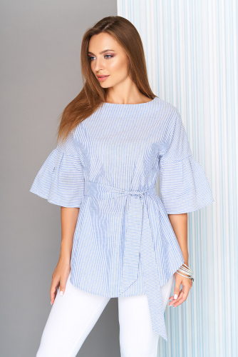 Блуза "L-622" (полоска в оранжевый цветочек)