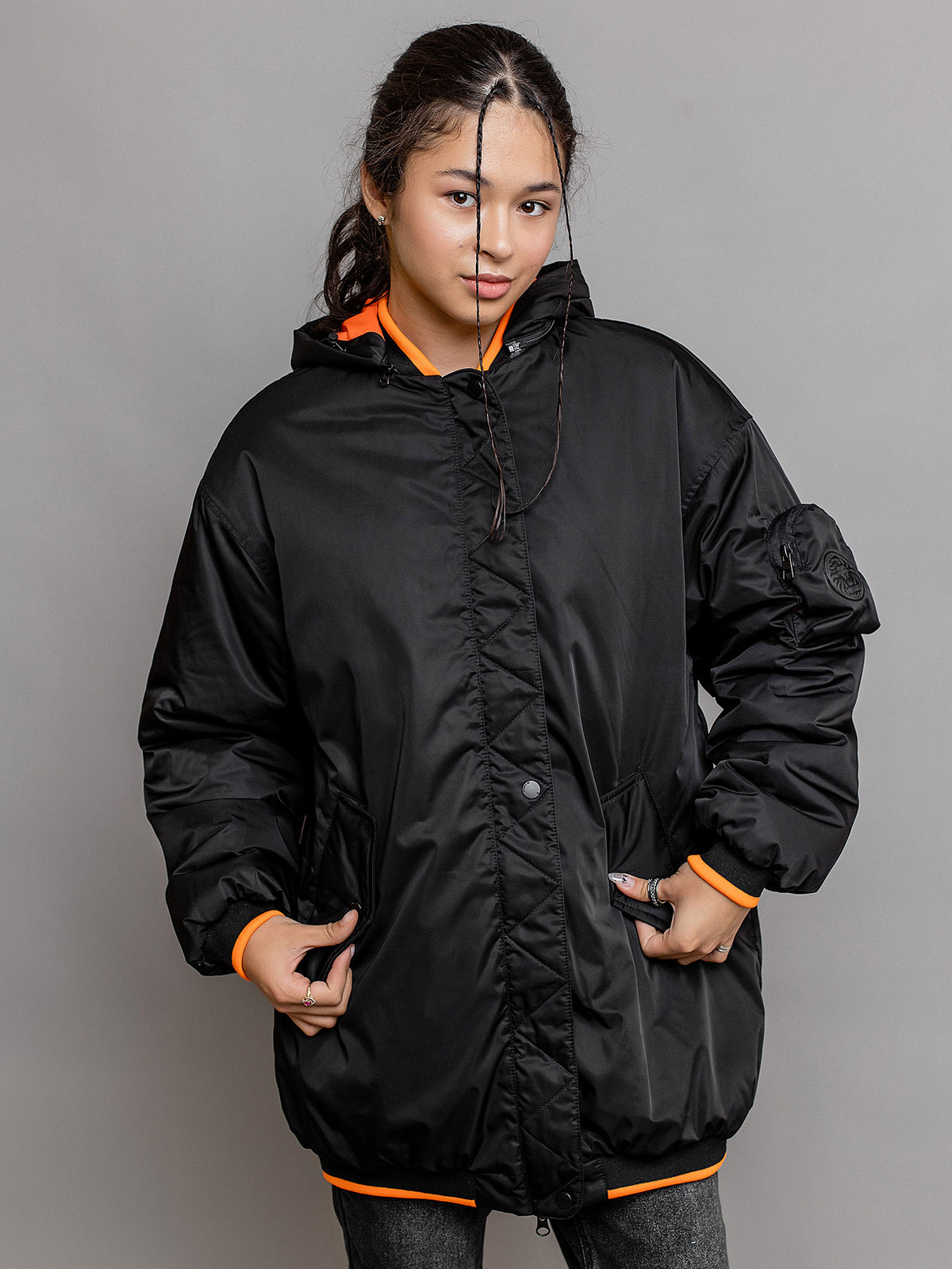 635-24в-1 Бомбер для девочки удлиненный "Смэш"