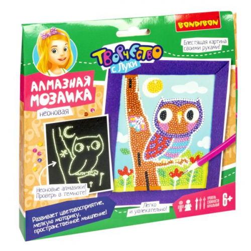Набор для творчества BONDIBON. Алмазная мозаика НЕОН. Картина Совушка