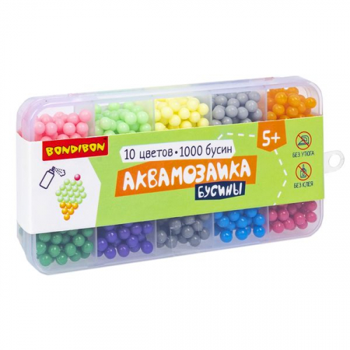 Набор для творчества BONDIBON. Аквамозаика бусины 2 (10 цветов, 1000 бусин)