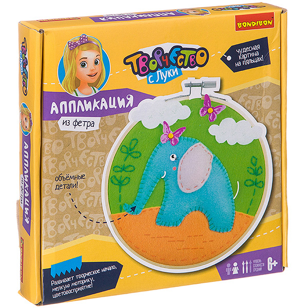 Набор для творчества BONDIBON. Аппликация из фетра на пяльцах. Слоник на прогулке