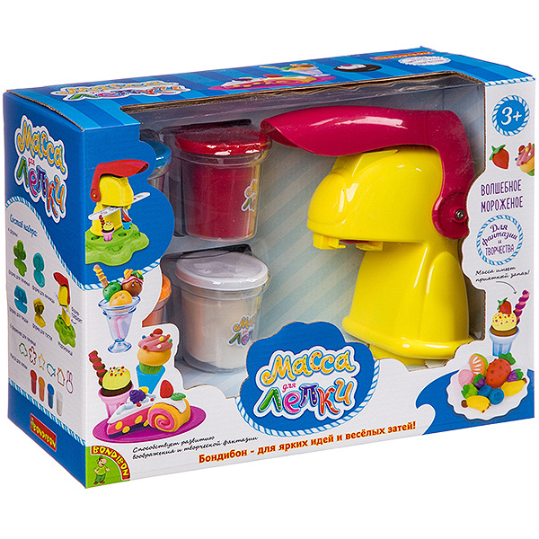 Набор с массой для лепки Bondibon, ВОЛШЕБНОЕ МОРОЖЕНОЕ, форма-трафарет, BOX