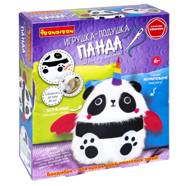 Набор для творчества BONDIBON, «Шить просто!» Игрушка-подушка ПАНДА