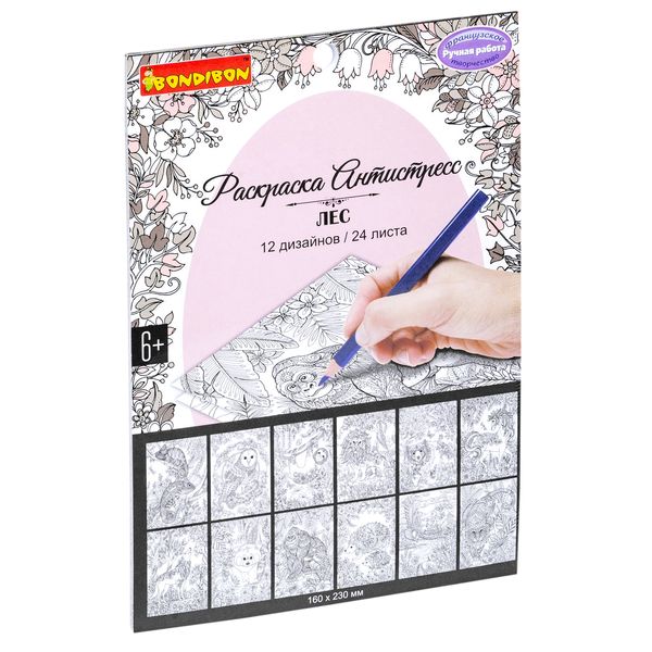 Книга раскрасок антистресс BONDIBON, Лес, 24 листа, 12 дизайнов, размер 23х16 см, арт. CPA2408