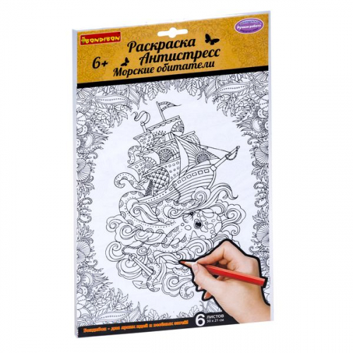 Набор раскрасок антистресс BONDIBON, Морские обитатели, 6 листов 30х21 см, арт. CPA2302V