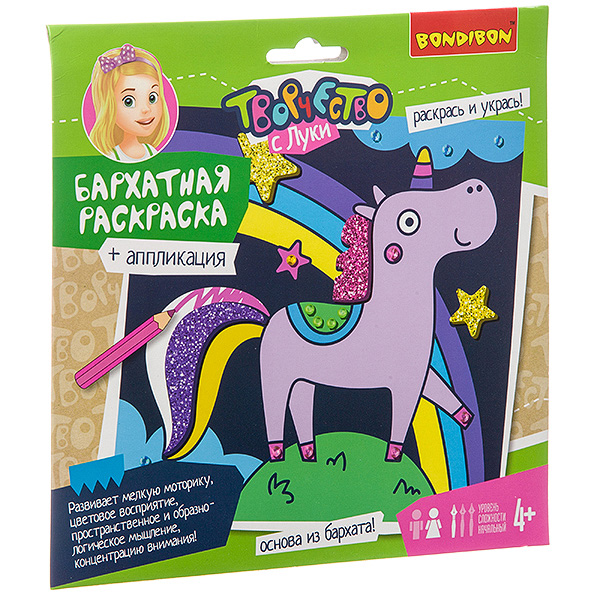 Набор для творчества BONDIBON. Бархатная раскраска и аппликация 2 в 1