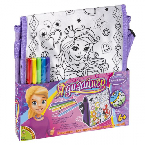 Сумка для раскрашивания BONDIBON, ПРИНЦЕССА, почтальонка, 25х27 см.