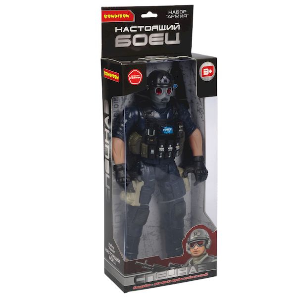 Набор солдат 31 см с оружием, " НАСТОЯЩИЙ БОЕЦ" Bondibon, BOX 40,5x15x6,5см , спецназовец в противо