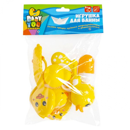 Набор для купания "ВЕСЕЛЫЕ УТЯТА" BABY YOU BONDIBON, сачок, щетка, 2 утенка, водный пистолет, пластм