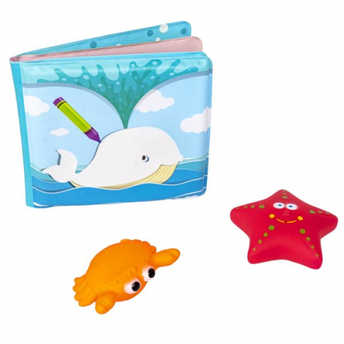 Книга для купания с проявл.картинками, Bondibon, "МОРСКИЕ ОБИТАТЕЛИ", 14х12,5 см, пищалка, pvc. В ко