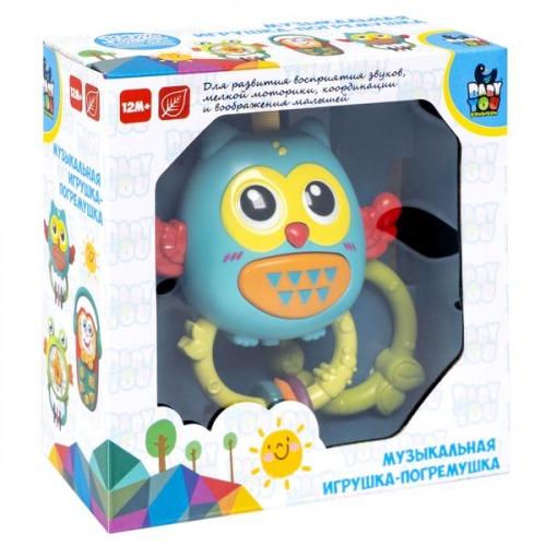Игр.разв.погрем. пласт., СОВА, BABY YOU BONDIBON, подвеска музыкальная на бат., BOX