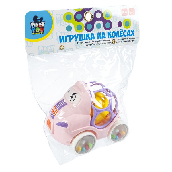 Игр.разв.пласт. МАШИНКА, Bondibon, мягк.часть с шар., на колесах, в ассорт.