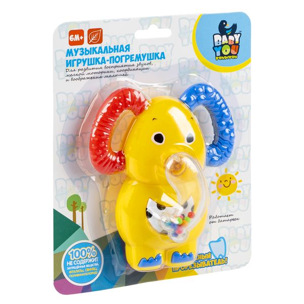 Игр.разв.погрем. пласт., СЛОН, Bondibon, музыкальная, на бат., CRD