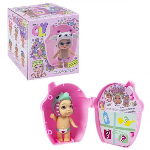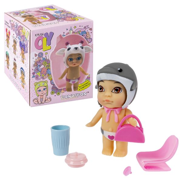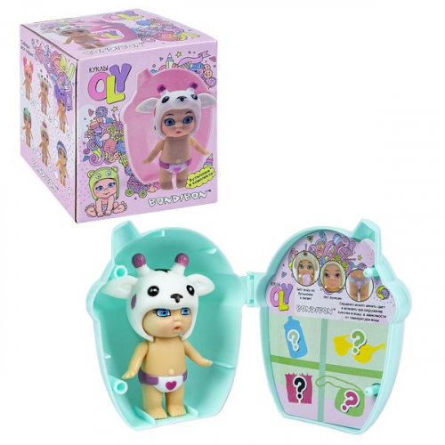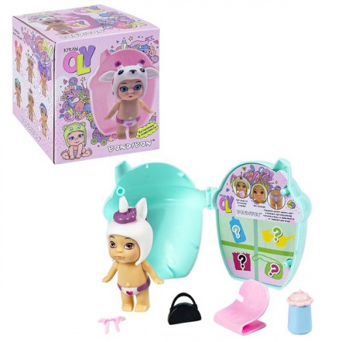 Набор игровой Bondibon куколка OLY в шапочке с животным и аксессуарами в поильнике, ВОХ 11,5х9,3х9,