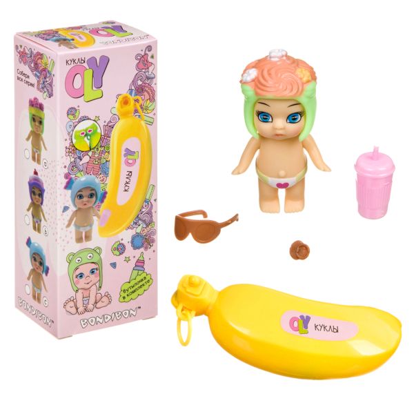 Набор игровой Bondibon куколка OLY во фруктово-конфетной шапочке и аксессуарами в банане, ВОХ 15х6,6