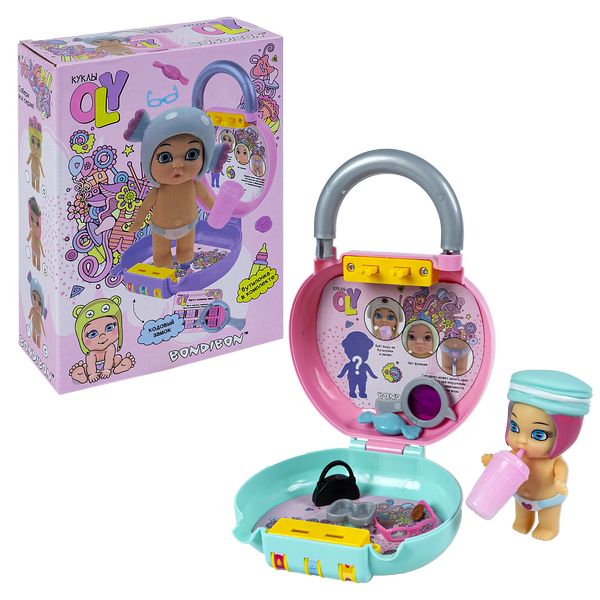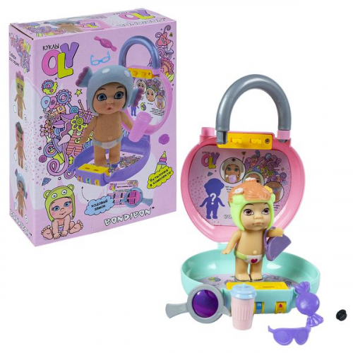 Набор игровой Bondibon куколка OLY в шапочке с животным и аксессуарами в чемоданчике на кодовом зам