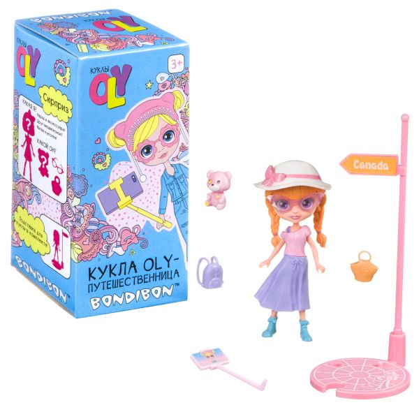 Набор игровой Bondibon 11,5см куколка OLY- путешественница c одеждой, аксессуарами, подставкой и мед