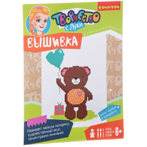 107 р. 226 р. Набор для творчества BONDIBON. Вышивка на хлопковой канве. Мишка