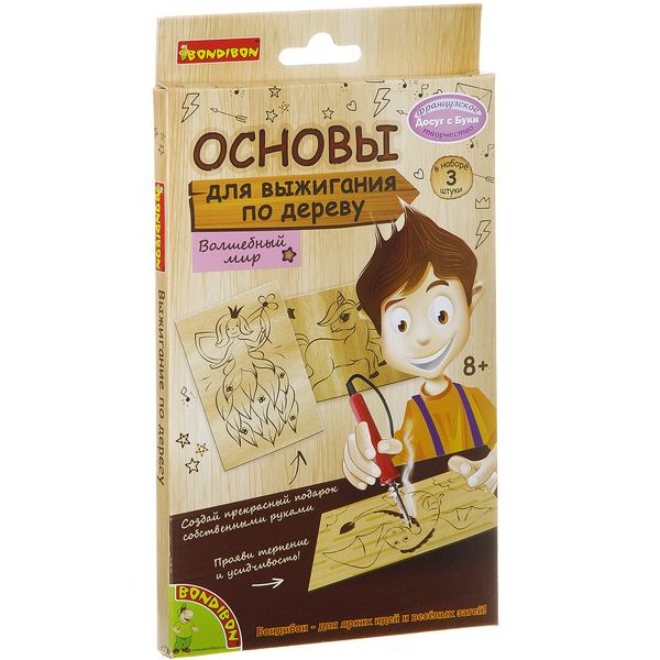 216 р. 410 р. Французское творчество Досуг с Буки BONDIBON, Набор основ для выжигания с рисунками (3шт.), арт.SI00