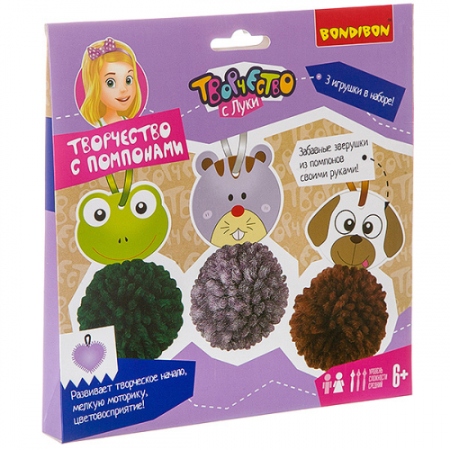 151 р. 319 р. Набор для творчества BONDIBON. Творчество с помпонами. Забавные зверушки! (собака, лягушка, кошка)