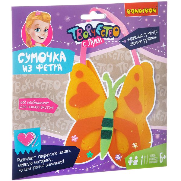 118 р. 279 р. Набор для творчества BONDIBON. Сумочка из фетра.Бабочка