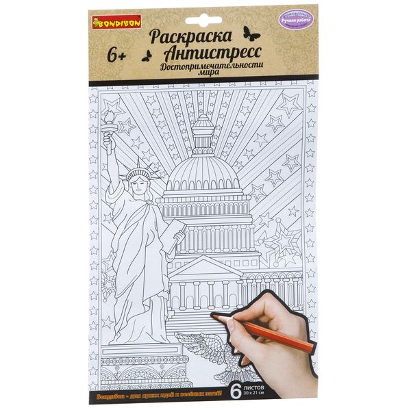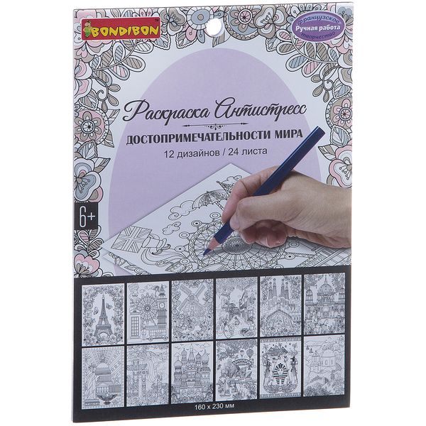 128 р. 303 р. Книга раскрасок антистресс BONDIBON, Достопримечательности мира, 24 листа, 12 дизайнов, размер 23х16