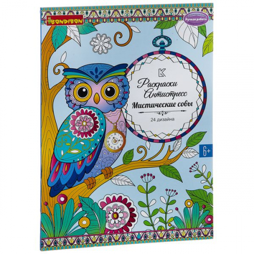 216 р. 514 р. Книга раскрасок антистресс BONDIBON, Мистические совы, 24 дизайна, размер 28,5x21 см, арт. CPA3203V