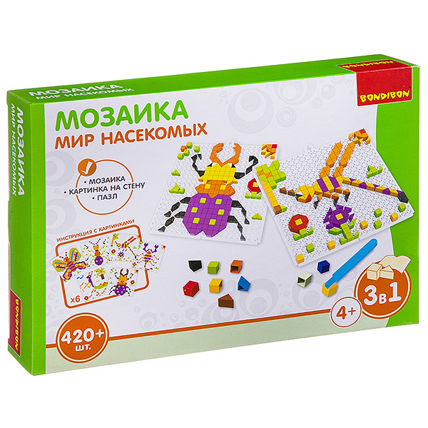 656 р. 1248 р. Логические, развивающие игры и игрушки Bondibon Мозаика «МИР НАСЕКОМЫХ», 420 дет., BOX 30x4.5x21 см