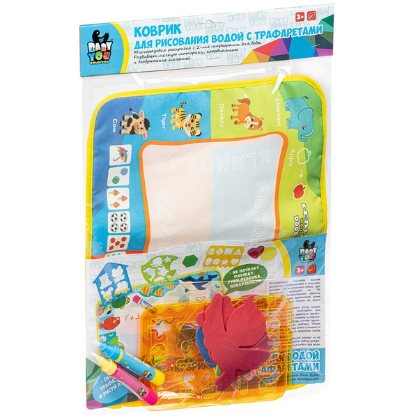Коврик-водная многоразовая раскраска BONDIBON с трафаретами, ВЕСЕЛЫЙ СЧЕТ, 2 ручки, 39х29 см.