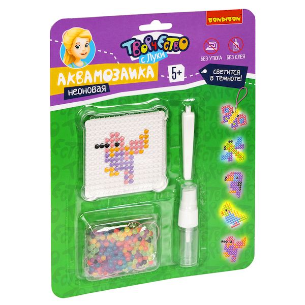Набор для творчества BONDIBON. Аквамозаика неоновая. Светится в темноте!