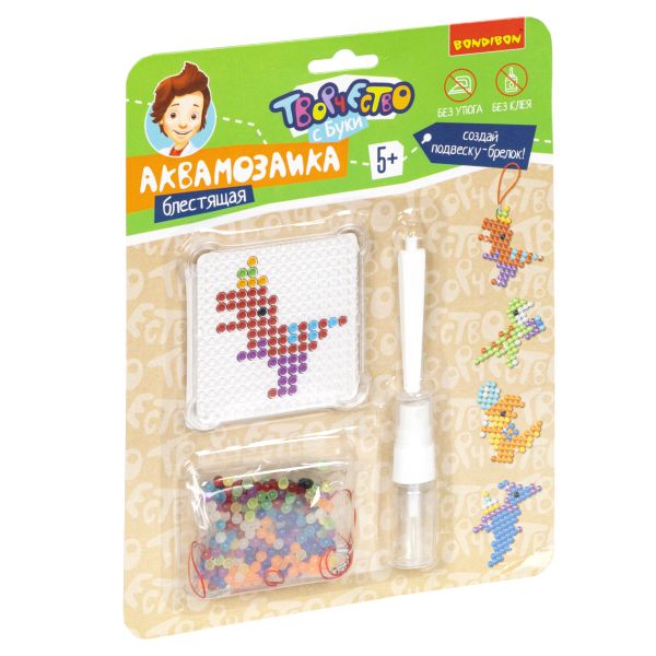 Набор для творчества BONDIBON. Аквамозаика блестящая (брелоки- подвески) "Праздничные динозавры"