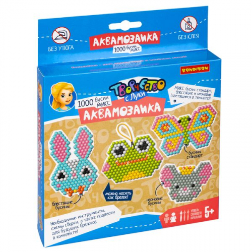 Набор для творчества BONDIBON. Аквамозаика 1000 бусин. МИКС."Обитатели луга"
