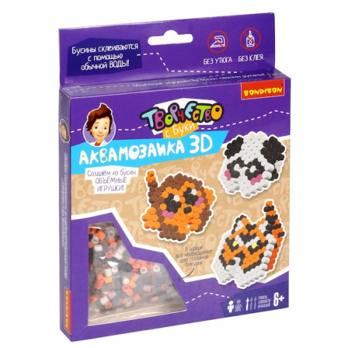 Набор для творчества BONDIBON. Аквамозаика 3D (3 фигуры. Кошка, собака, попугай)