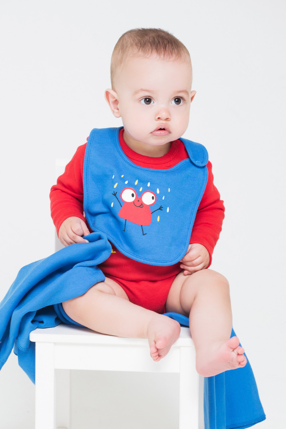 Нагрудник льдисто-голубой(слоники)