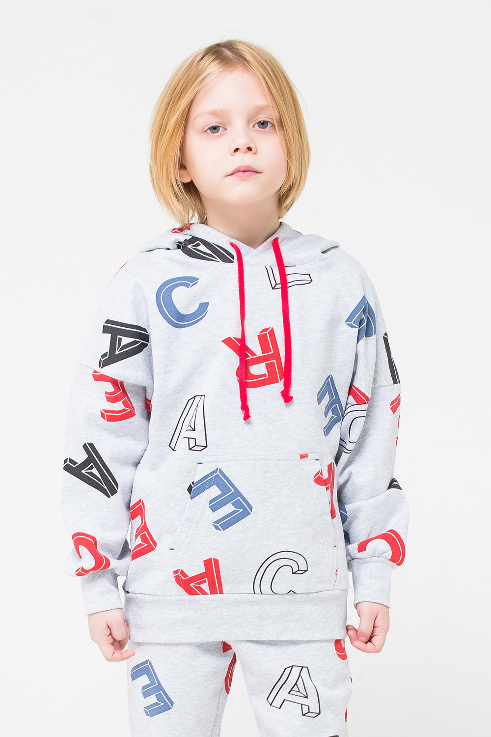 Джемпер серо-голуб.меланж, буквы гонки к1253