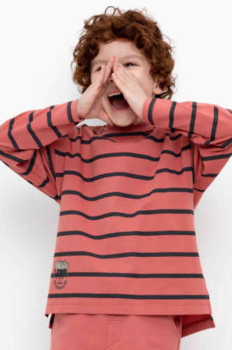 Хлопковый джемпер оверсайз для мальчика в полоску Crockid