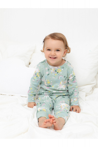 Crockid Пижама К 1552 голубая дымка, единороги в цветах Crockid