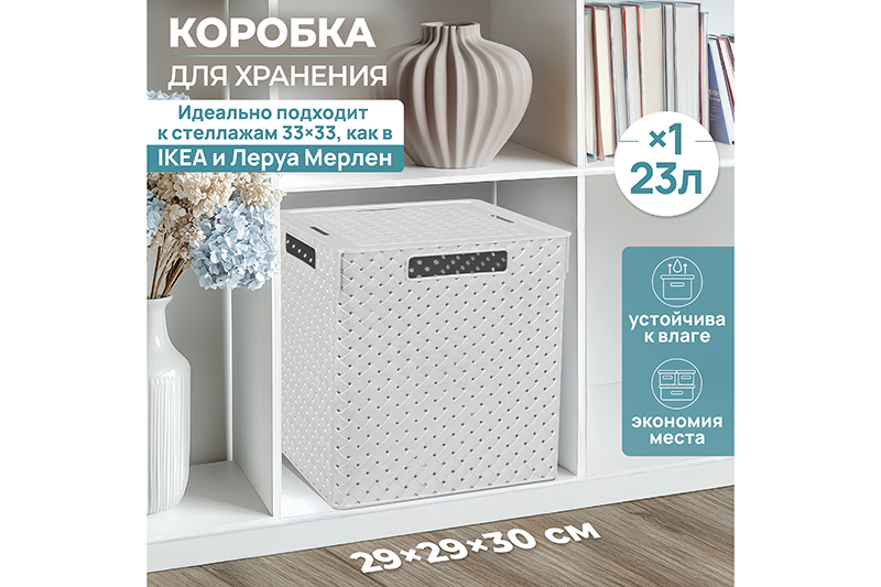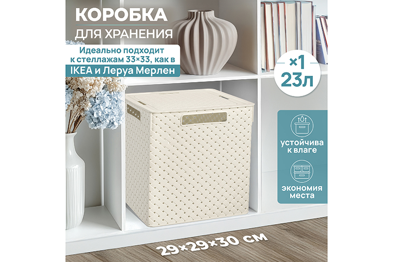 БЫЛО 712 руб! Коробка для хранения квадратная 23 л 29,4*29,4*30,1 см "Береста" с крышк(слон. кос) (модель 6823126)