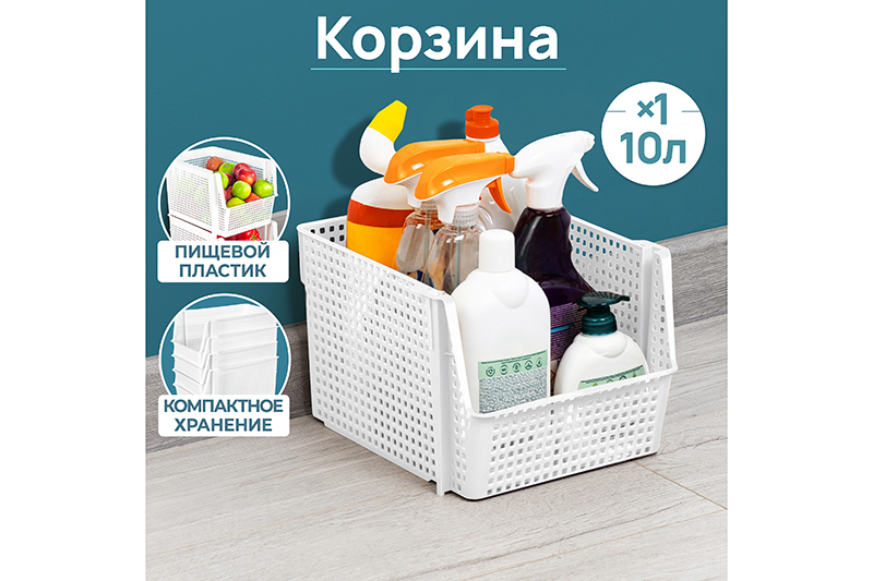 БЫЛО 254 руб! Корзинка для хранения 10 л 29,5*25*18 см "Лофт" штабелируемая, белая (модель 850006)