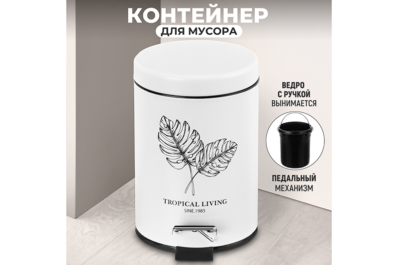 БЫЛО 942 руб! Контейнер для мусора 3 л 22*17*24,5 см с педалью, белый