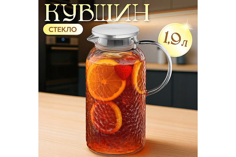 БЫЛО 765 руб! Кувшин 1,9 л 17*11,5*23,5 см "Crystal glass" с металл. крышкой с силикон. уплотнителем, стекло