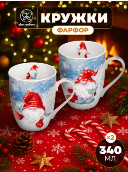 БЫЛО 580 руб! Набор 2 кружек 340 мл 11,5*8*10,5 см "Гномики" NEW BONE CHINA