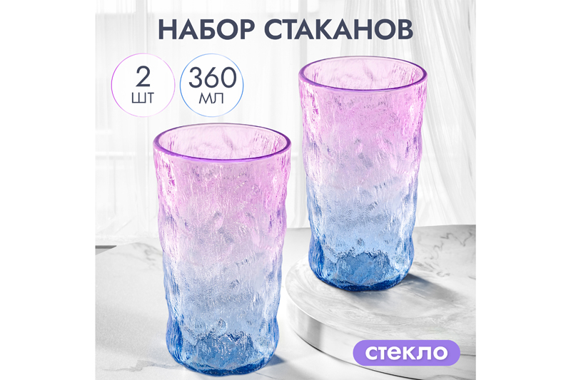 БЫЛО 426 руб! Набор 2 стаканов 360 мл 8*8*13,5 см стекло