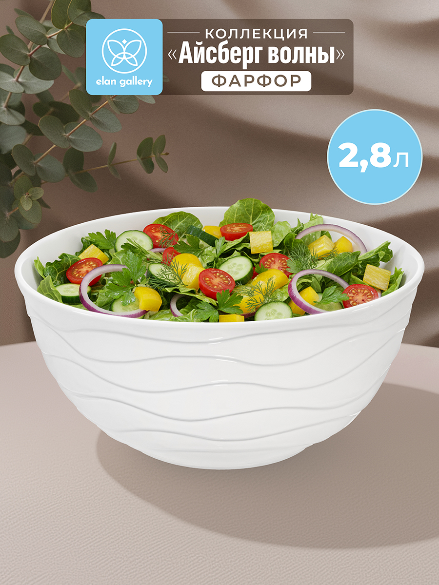 БЫЛО 1085 руб! Салатник 2,8 л 24*24*11,5 см "Айсберг волны", фарфор