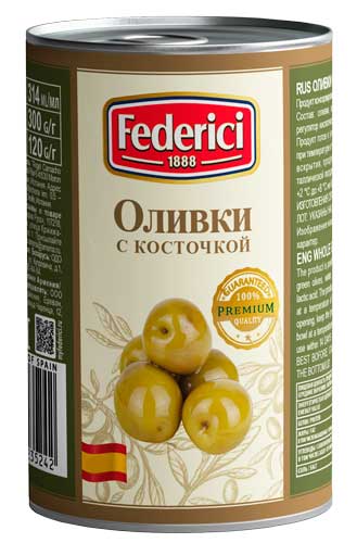 Оливки FEDERICI с косточкой /жесть/ 300г*12
