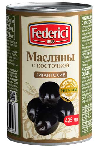 Маслины FEDERICI Гигантские с косточкой /жесть/ 420г*12