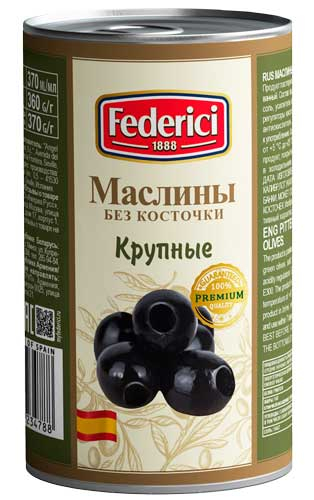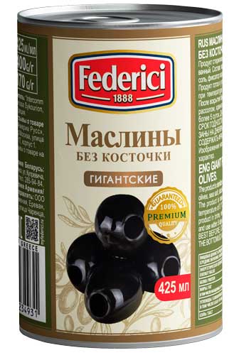 Маслины FEDERICI крупные без косточки /жесть/ 350г*12