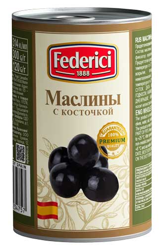 Маслины FEDERICI с косточкой /жесть/ 300г*12