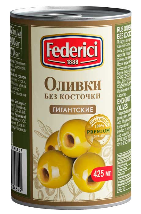 Оливки FEDERICI Гигантские без косточки /жесть/ 400г*12